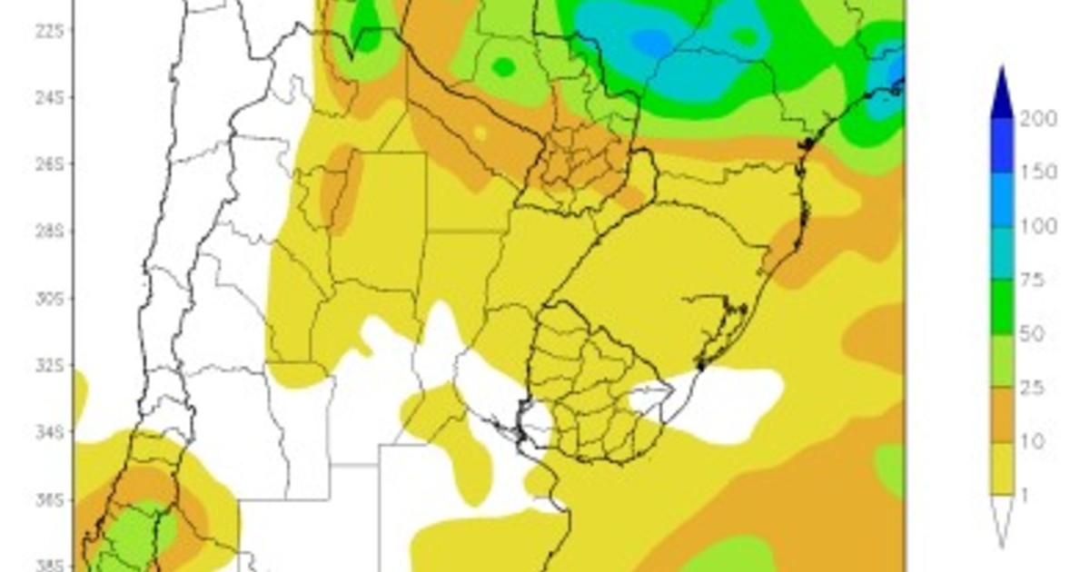 • El norte del NOA, la mayor parte del Paraguay y el norte parte de la Región del Chaco observarán precipitaciones moderadas a abundantes (10 a 25 mm).