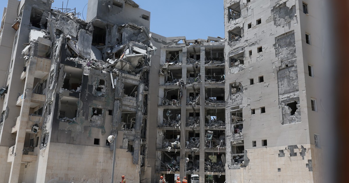 “El misil entró por allí y ahí se ve el cráter”, señala en el interior de un edificio que hasta hace unos días era una casa y ahora es un montón de ruinas con trabajadores retirando escombros.